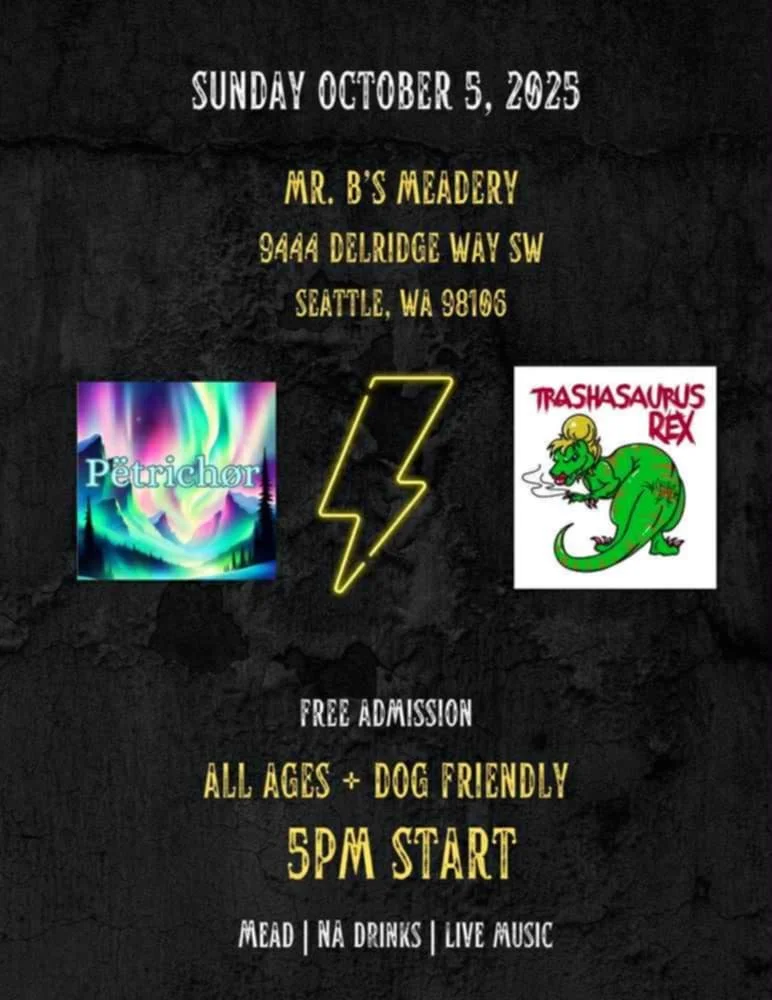 Free all ages live music by Petrichor and Trashasaurus Rex