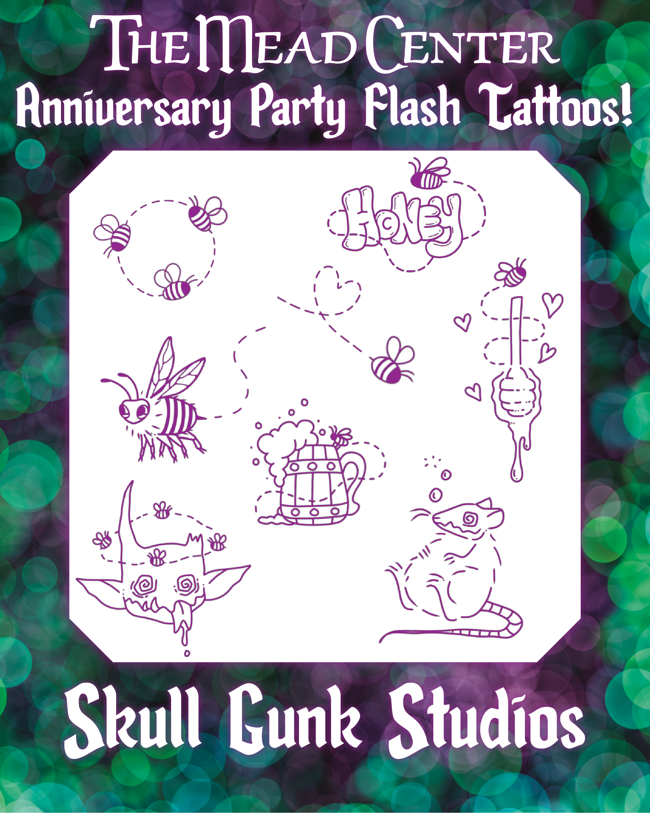 ALSO - Get poked by Mikauley of Skull Gunk Studios! B and I are both sporting their awesome artwork! AND they designed our arts event mascot/logo of sorts for the Mead Center!