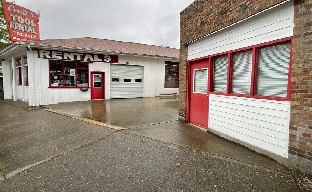 The larger main building operated previously a gas station from 1926-1944 then upholstery repair shop from 1944-1966. It operated as Center Tool Rental since 1966, serving the community for over 50 years.